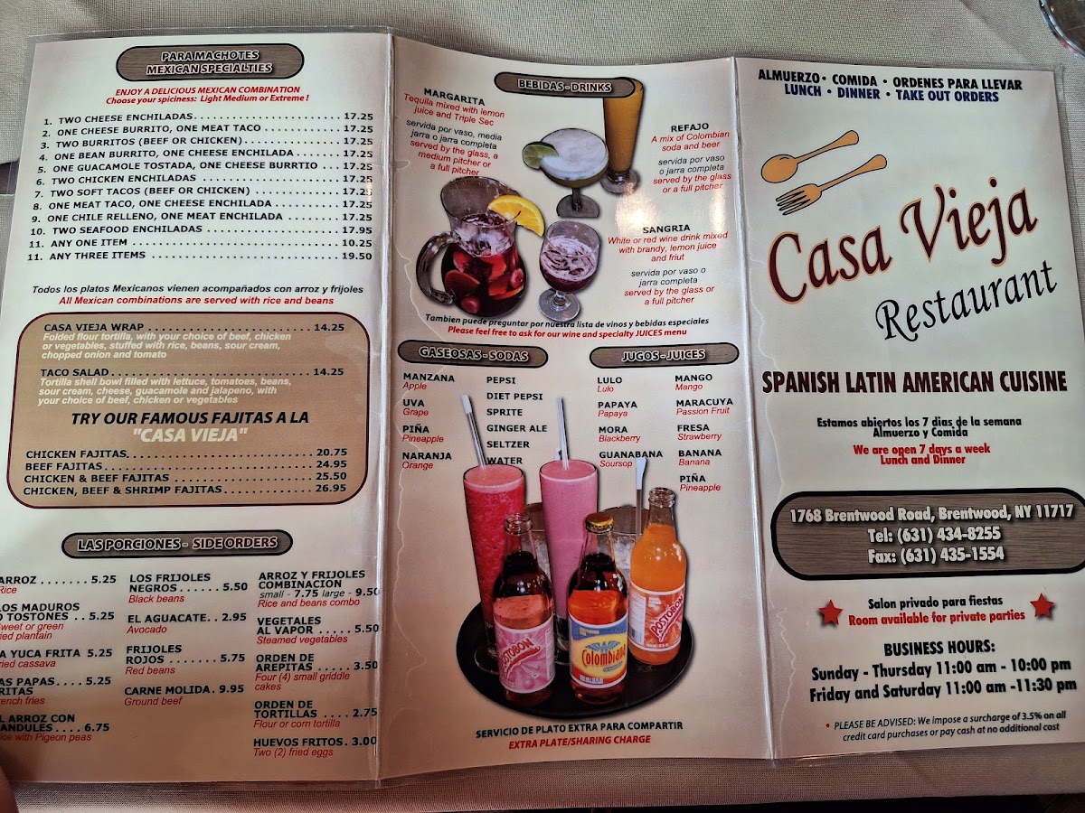 Welcome to Casa Vieja - Brentwood, a delightful Colombian restaurant that captures the essence of traditional Latin American flavors. Nestled at 1768 Brentwood Rd, Brentwood, NY, Casa Vieja offers a vibrant menu, ideal for family dinners or gatherings with friends. Start your meal with El Maduro Con Queso Y Carne, yellow plantains stuffed with cheese and meat, or try the Las Papas Rellenas, tender potato balls filled with savory meat. Their fajitas, available with chicken, beef, or shrimp, are a must-try. For those seeking refreshing options, the Ceviche provides a zesty taste of the ocean. With rich, comforting dishes like Ajiaco, a creamy chicken soup, Casa Vieja promises an experience reminiscent of Colombian home cooking. Customers rave about the generous portions and friendly service, making every visit special. Join the culinary journey today and savor the authentic tastes of Colombia!